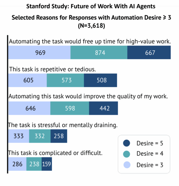 Fifteen hundred workers just let everyone in on a secret while participating in a Stanford Study entitled, “Future of Work with AI Agents.” This study has been described as one of the most comprehensive examinations to date on how artificial intelligence (AI) agents are reshaping the workplace in the United States and elsewhere across a broad range of occupations.