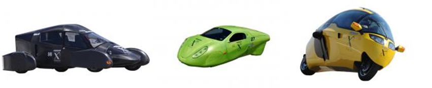A second X Prize competition in 2010 produced three winners who built vehicles capable of achieving 2.35 liters per 100 kilometers (100 miles per gallon) over a 160 kilometer (100 mile track). The vehicles belonging to Edison2, Li-on Motors and X Tracer can be seen from left to right in the images below.