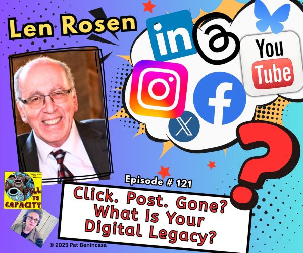 When she found some of my postings on the subject of managing digital legacies, Pat reached out to me to ask if I would join her on a podcast, which I agreed to with a small sense of apprehension, having never done this before. But she made the conversation easy, and I hope you can get a chance to listen to “Click. Post. Gone? What is Your Digital Legacy?” For additional information, type “digital assets and death” in the Search window on the menu bar of the 21st Century Tech Blog to find more postings on this subject.