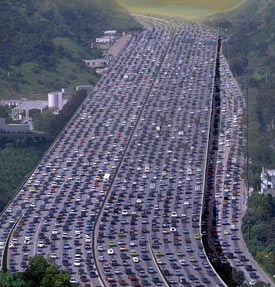Another dark side is the propagation of 21st century technology without safeguards. China is the one country where this phenomenon is quite visible. A good example can be seen in the transportation sector where there is a rising demand for automobiles. The Chinese have caught the North American and European bug about cars. Beijing, Guangzhou and Shanghai are the hottest markets and have had to resort to a lottery to allocate vehicle registrations. To service this demand, the country has added 32,000 kilometers (almost 20,000 miles) of new paved highway in the last 5 years, a rate 4 times faster than the speed with which the United States built out its Interstate highway system. The bicycle, once the principal means of transport for so many in China, has receded as automobiles have taken over. Where 60% of trips taken in Beijing back in 1986 were by bicycle, today that number is 17% today. The result for China is 300 traffic fatalities per day, the highest rate in the world, and smog in its urban centres caused by automobile tailpipe emissions.