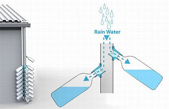 - Using rainwater runoff off roofs captured in rain barrels, and building grey water recycling systems to maximize the use of water in areas where access to clean water is limited. Evan Gant is the inventor of RainDrops, a system that attaches plastic bottles to existing roof and gutters to collect rainwater.